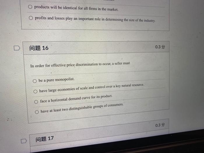 Have large economies of scale and control over a key natural resource. Conditions for Price Discrimination. O profits and losses play an important role in determining the size of the industry 问题 16 035 In order for effective price discrimination to occur a seller must be a pure monopolist.